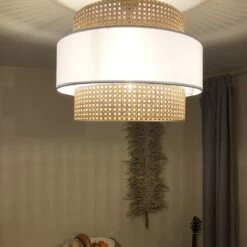 Très raffiné et dans un style tout en douceur, nous vous présentons cette nouvelle suspension en raphia. Cet abat-jour sera parfait sur un plafond pour amener une touche ethnique chic à votre pièce. Ce luminaire offre une diffusion de lumière légèrement filtrée qui donne une ambiance tamisée très agréable. Hauteur 30 cm, Diamètre en haut 25 cm et en bas 30 cm