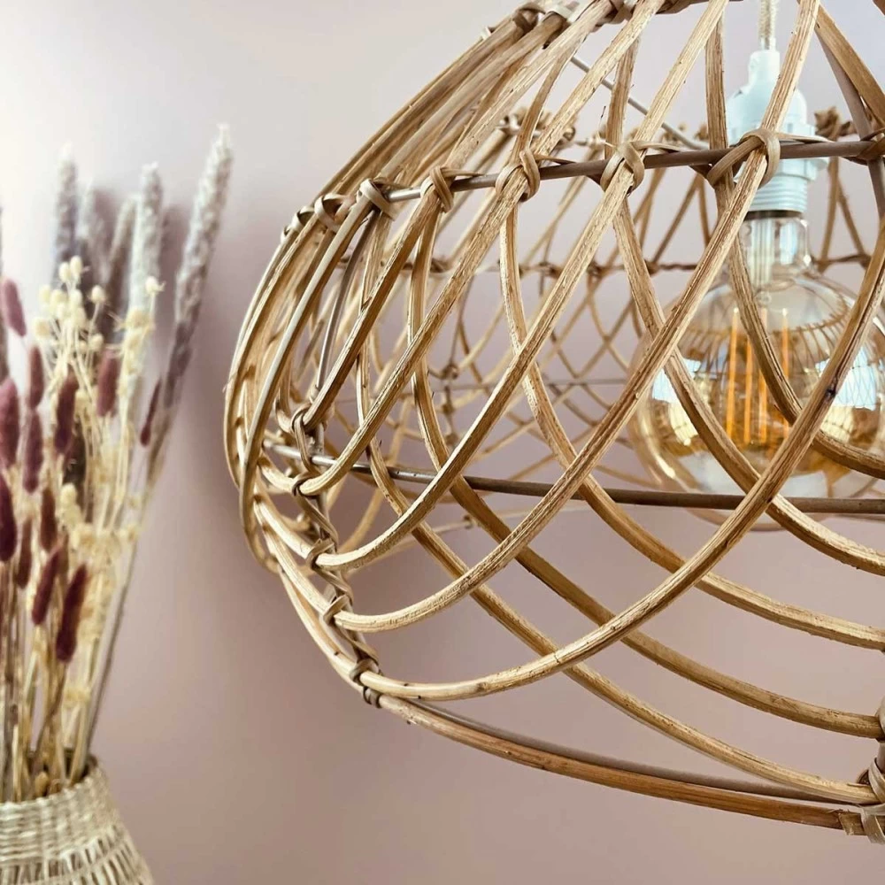 Luminaire en rotin coloris naturel avec forme douce et harmonieuse