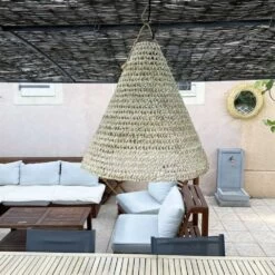 Abat jour pour Lustre conique en fibres de palmier « Doum » du Maroc tressée