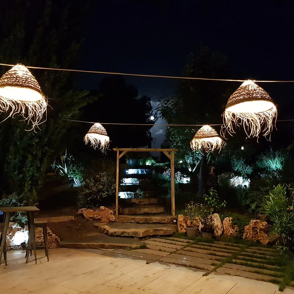 Luminaire au style naturel et bohème en fibres alfa tressées main