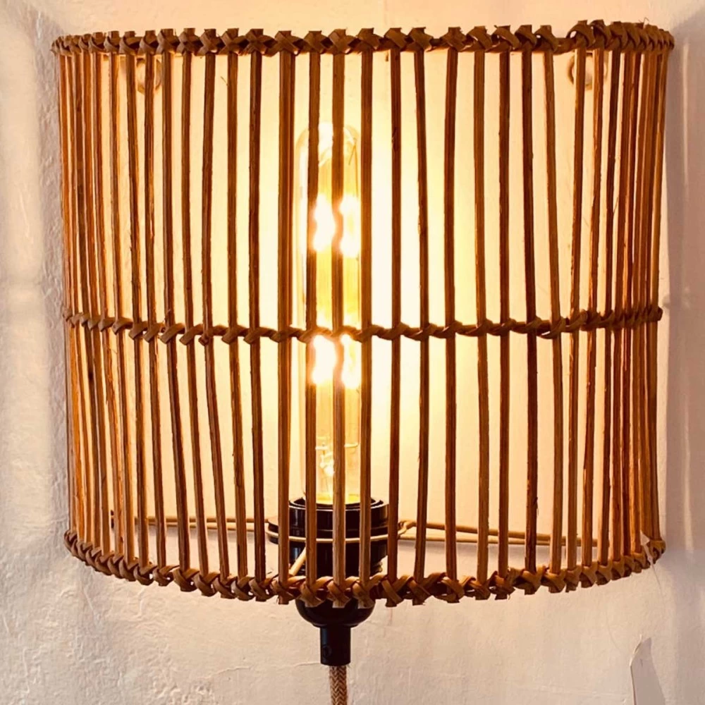 Applique luminaire E27 avec abat-jour en rotin marron sur armature métal