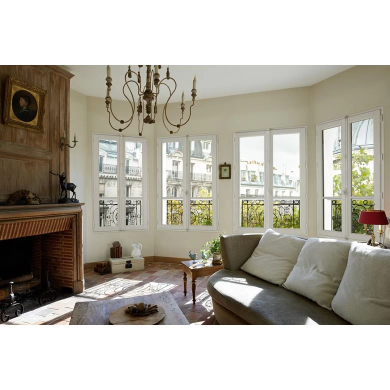 L’appui de fenêtre Rivoli de 64 cm est spécialement adapté aux fenêtres de grandes hauteurs. Ce modèle est caractérisé par ses sections de volutes et de traverses. Une option main courante en Tauari existe.