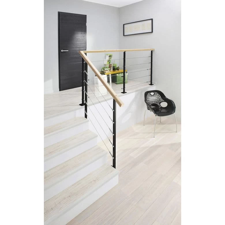 Conçue pour les escaliers intérieurs standard ou sur mesure, la balustrade en acier Cubik avec remplissage cables acier, est équipée d’une main courante (bois massif ou placage coordonné) qui en rehaussera le caractère.