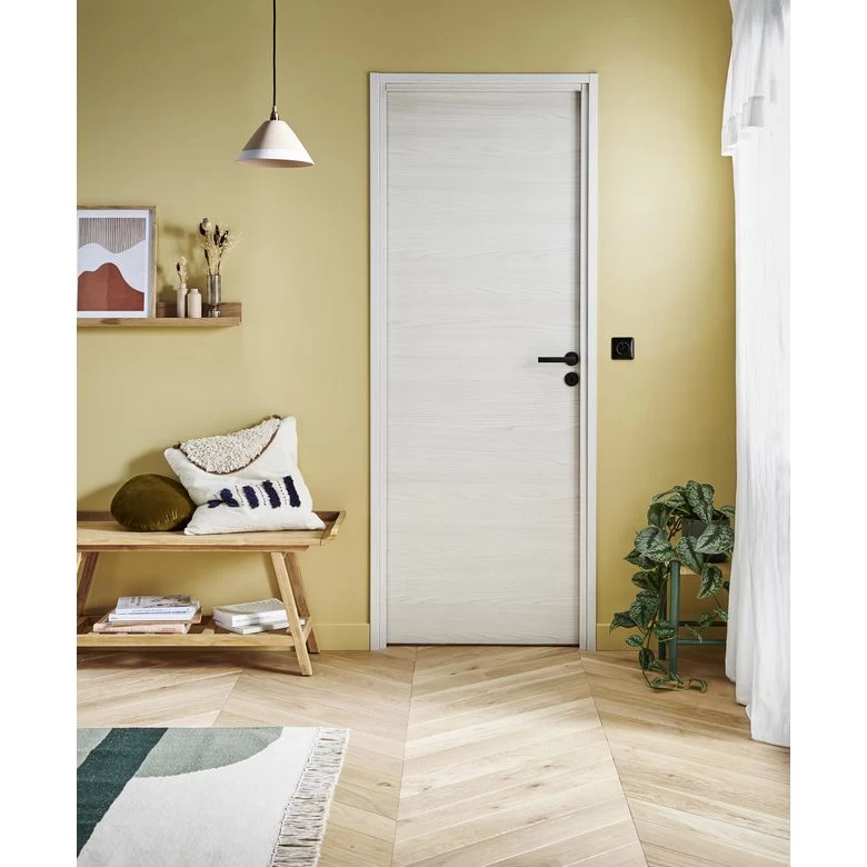 Fabriqué en France par Lapeyre, ce bloc-porte huisserie fin de chantier Roxie haut de gamme de qualité est conçu pour procurrer un confort d’utilisation maximal et dispose d’une esthétique très soignée. Ses décors structurés immitent à perfection les nervures du bois et sublimeront vos pièces. Elégante, la porte Roxie dispose de charnières invisibles. Ces charnières, réglables en 3D, permettent un ajustement minutieux pour une pose parfaite. Les portes Roxie ont une structure intérieure pleine pour une meilleure isolation entre vos pièces et une résistance accrue face aux chocs. Sa serrure magnétique permet une fermeture silencieuse.