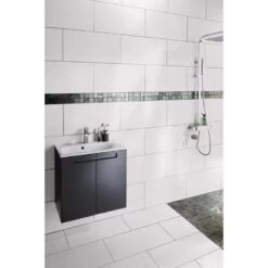 Variez votre carrelage mural avec ces barrettes décor en ardoise naturelle, déclinées en 3 teintes, pour une ambiance salle de bains minérale.
