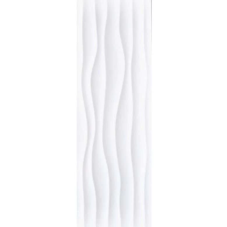 Un carrelage mural décor en faïence brillante structuré effet ondulé, à mixer au carrelage ligné Architekt II pour un style épuré dans votre cuisine ou salle de bains.