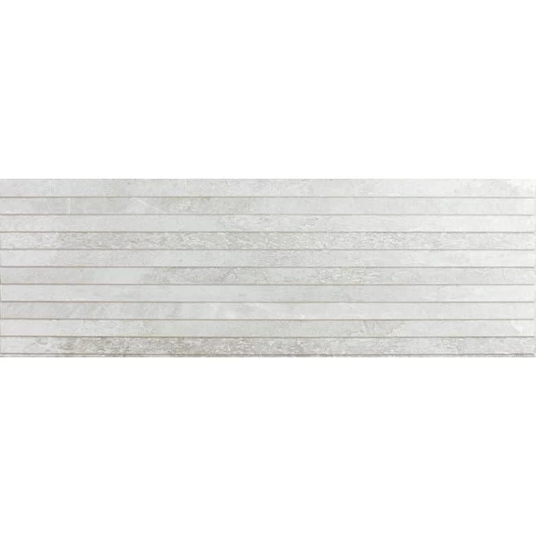 Un carrelage décor en faïence effet pierre naturelle structurée, proposé en beige ou gris pour apporter une touche minérale relaxante dans votre salle de bains, en association avec le carrelage Freedom.