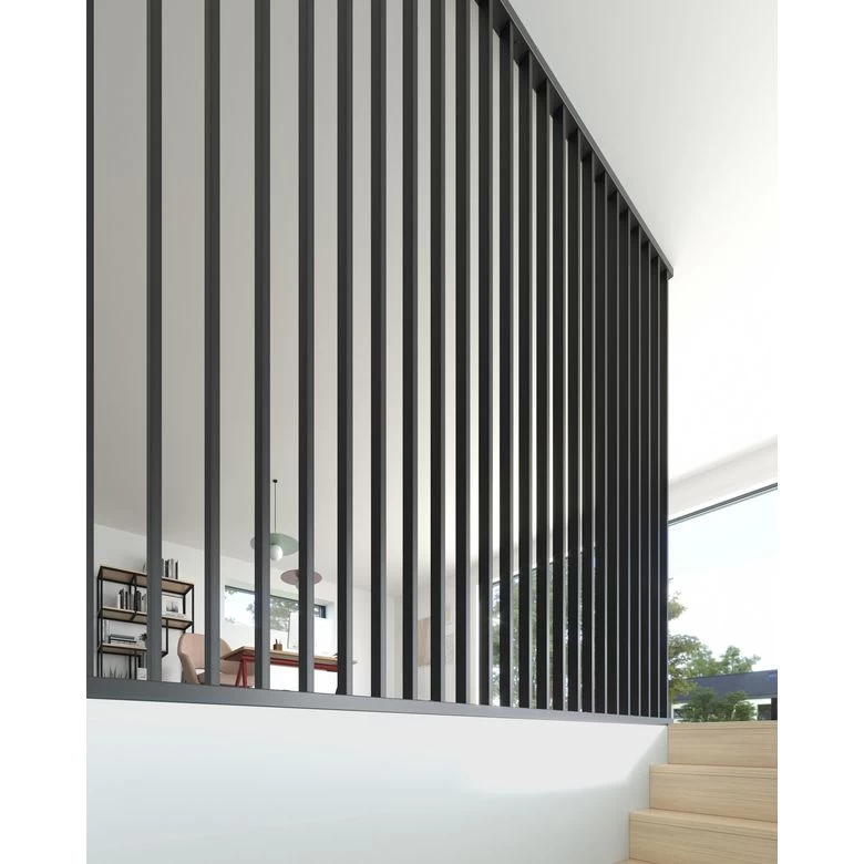 Donnez du style à votre pièce avec cette cloison en acier. Disponible en deux coloris , cette balustrade existe également en rampe pour escalier sur notre site.