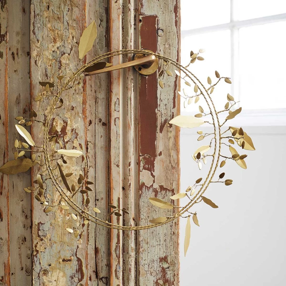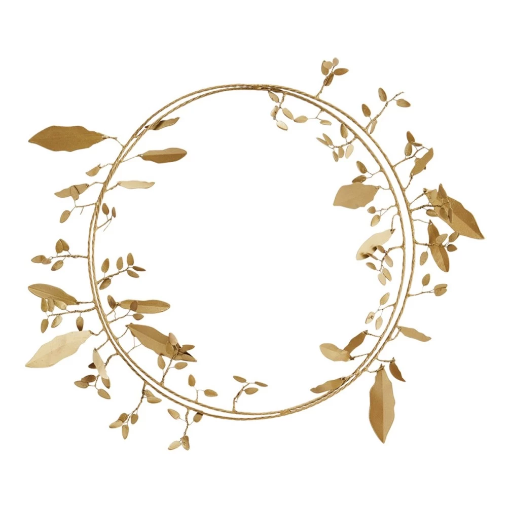 Décoration couronne de feuilles en métal coloris doré rustique