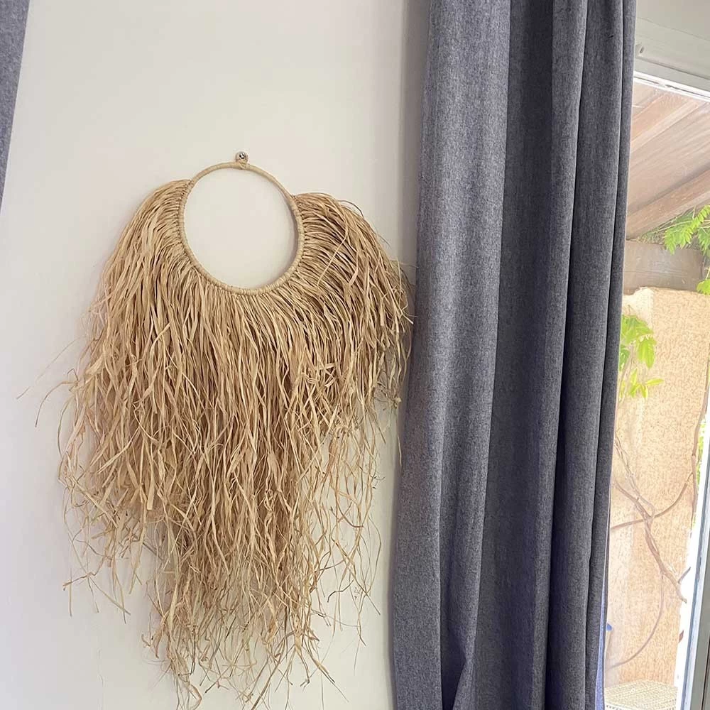 Une déco murale de caractère avec franges raphia – Hauteur 60 cm (avec franges)