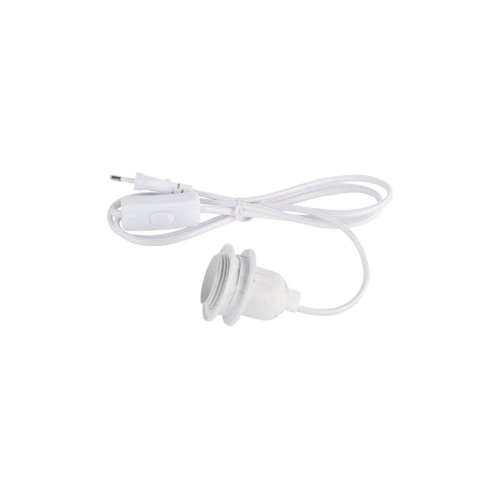 Douille E27 et Prise de courant Cordon tissu Blanc 1.50 m + interrupteur