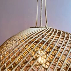 Abat-jour Pour Suspension Cannage Rotin Naturel Et Blanc « Cassie » 30 Cm