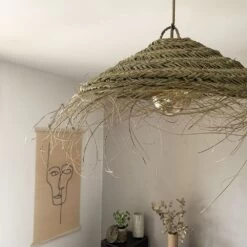 Abat-jour Pour Suspension Parasol En Palmier Naturel Du Maroc Forme évasée