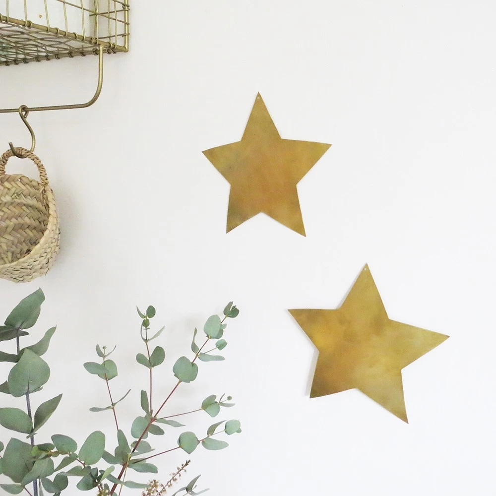Etoile en métal doré à suspendre ou à accrocher au mur avec de la patafix, suspendue à un fil, un trou est prévu à cet effet. En solo ou bien mixées, ces étoiles décoreront avec poésie les murs d’un salon ou d’une chambre. Vous pouvez les associer avec les autres décoration en métal doré, feuille de Monstera, cactus, lune dorée… Quelques pièces sont disponibles en métal cuivré rose Tailles S : 12 cm, M : 18 cm, L 24 cm