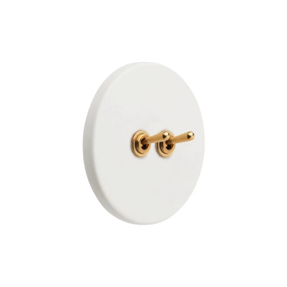Interrupteur blanc et Laiton en Porcelaine fabriqué à la main – Modèle double à bascule