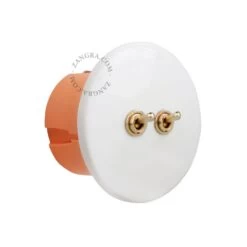 Interrupteur Double Blanc Et Doré – Laiton En Porcelaine De Limoges Rétro Chic