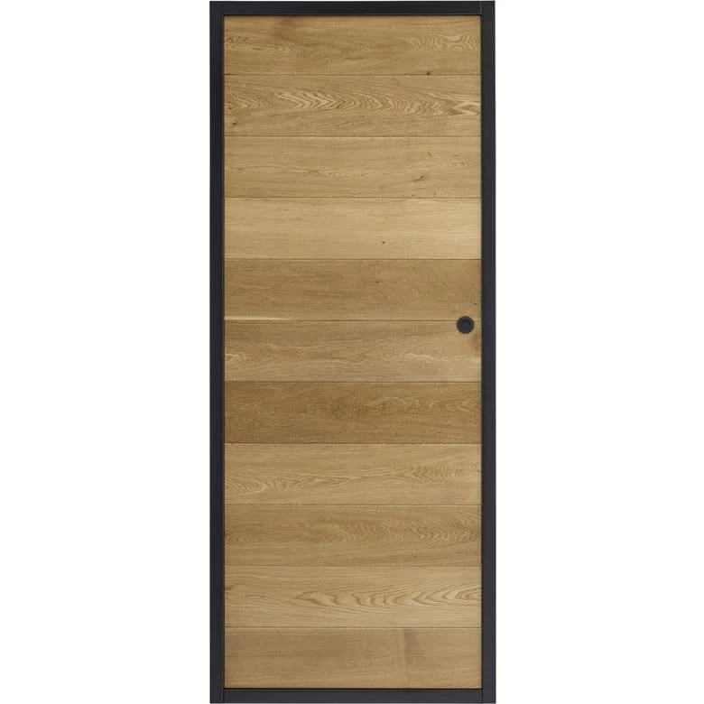 – Panneau de remplissage : 11 lames de H. 20 cm, âme en bois résineux et parement en chêne naturel brossé verni, Ep. 3 mm