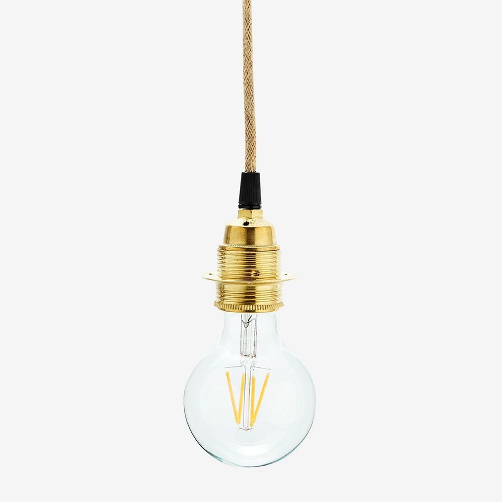 Luminaire suspendu douille dorée – Fil en jute 3 m + prise courant