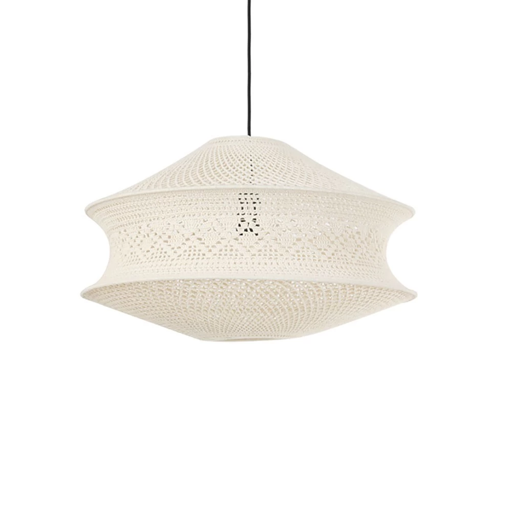 Avec une grande élégance et une pointe d’esprit bohème chic, cette suspension XL en tissu coloris écru se remarque instantanément grâce à cette forme évasée qui lui va si bien. Une pièce luminaire que vous pourrez suspendre dans un bureau, un salon ou une autre pièce pour une décoration qui fera de l’effet à coup sûr. Diamètre 60 cm et hauteur 37 cm (hors cordon)