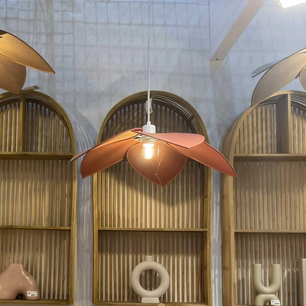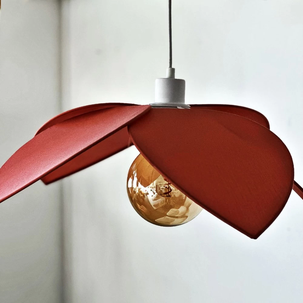 Suspension aérienne d’inspiration des années 70, composée de 5 pétales en voile de coton qui viennent se fixer sur une douille, vous pouvez légèrement ajusté pour donner le meilleur effet .