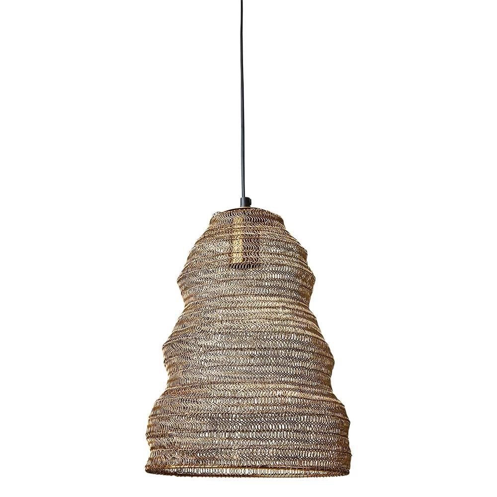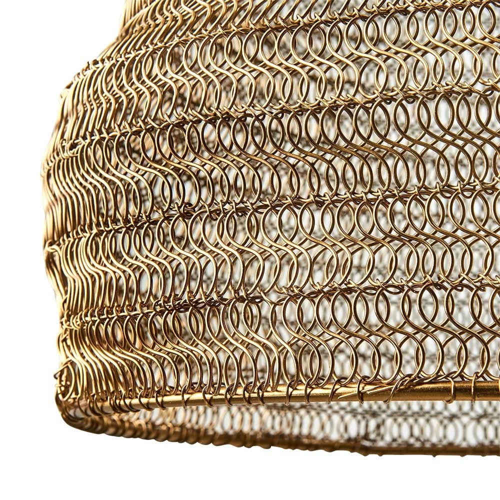 Avec une grande élégance et une pointe d’esprit bohème, cette suspension coloris doré en maille fine se déploie pour obtenir cette forme conique et irrégulière. Une pièce de luminaire en métal maillé que vous pourrez suspendre dans un salon ou une autre pièce pour une déco qui fera de l’effet.