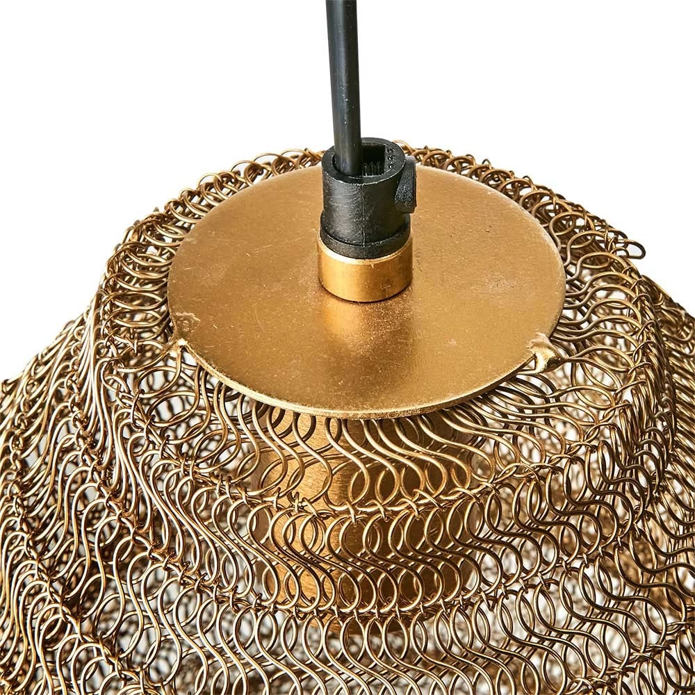 La suspension est livrée complètement électrifiée pour se fondre complètement avec le cachet du luminaire. Apportez une touche dorée très appréciée à votre intérieur. Ce luminaire en maille fine est léger et se met en place facilement à l’aide de la monture électrique fournie. Cette suspension mesure 35 cm de hauteur et 25 cm de diamètre sans compter la hauteur de cordon (réglable).