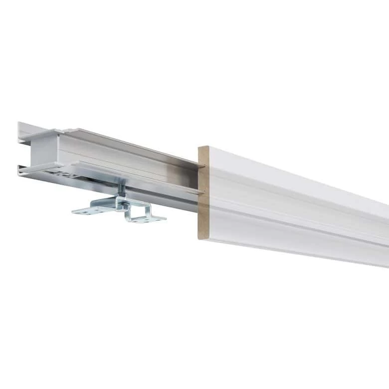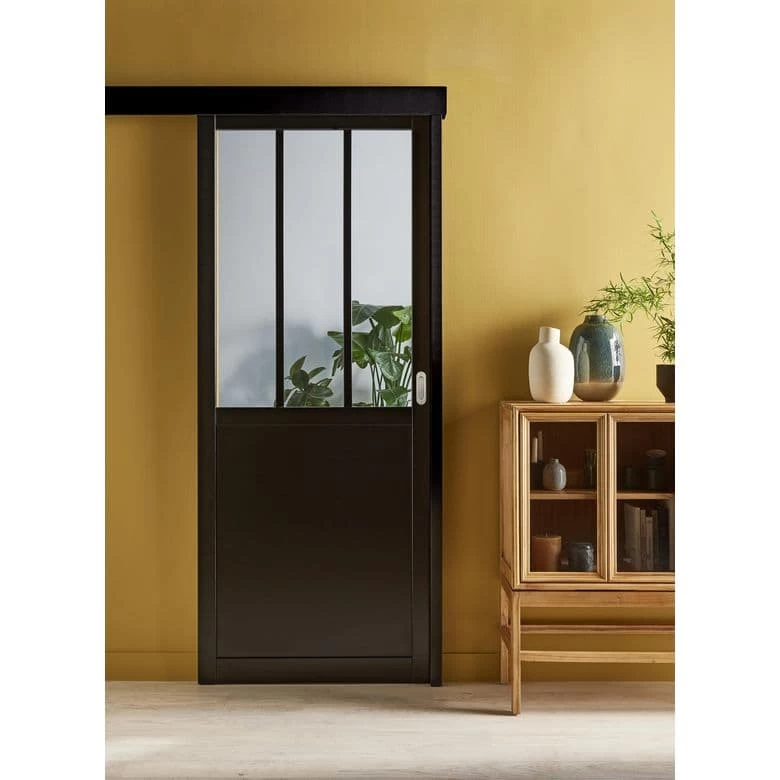 Ce système coulissant en applique permet de coordonner son habillage avec la couleur de votre porte coulissante d’intérieur en bois ou verrière : à peindre ou en décor au choix