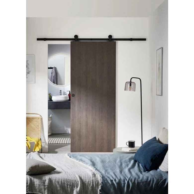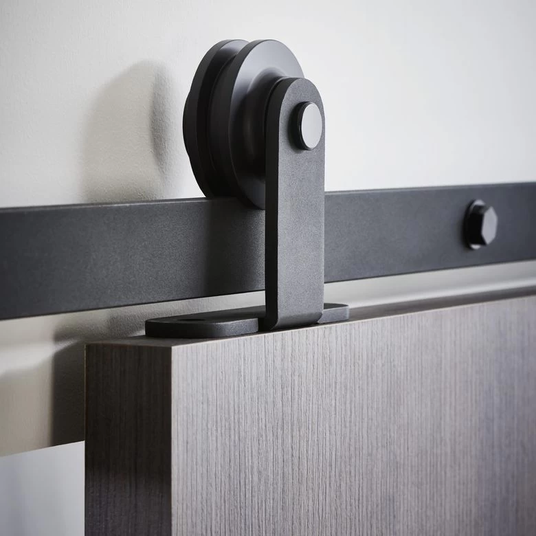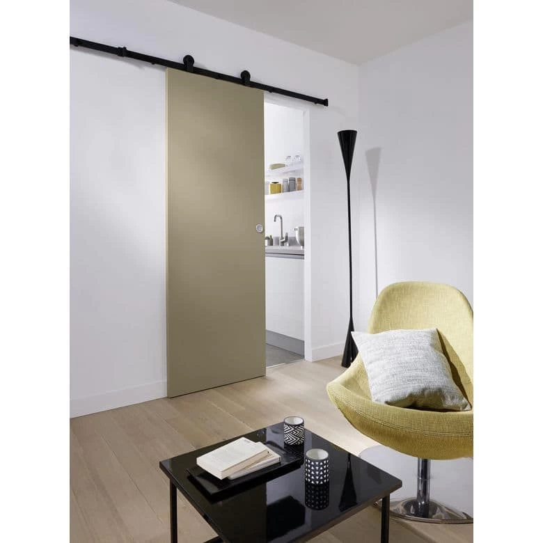Ce système coulissant en applique apparent, en acier noir sobre et intemporel, simplifie vos ouvertures pour recevoir une porte bois ou verrière. Fabriquée dans nos usines françaises, il fonctionne sur roulement à billes.