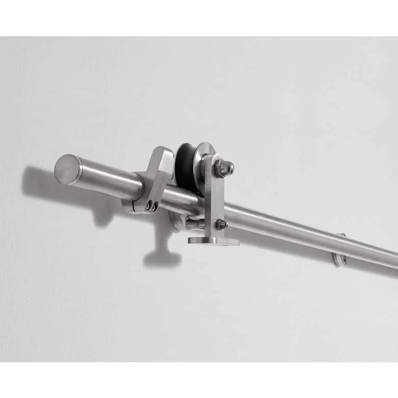 Ce système coulissant en applique apparent, en inox sobre et discret, simplifie vos ouvertures pour recevoir une porte bois. Fabriquée dans nos usines françaises, il fonctionne sur roulement à billes.