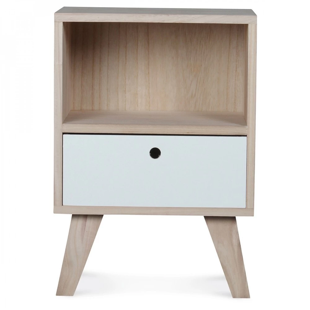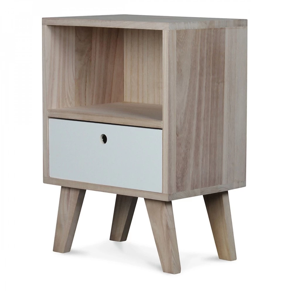 Table de chevet en bois coloris Boréal (blanc cassé) – 1 tiroir