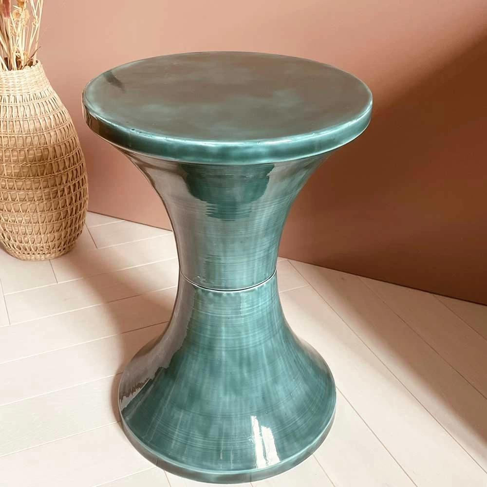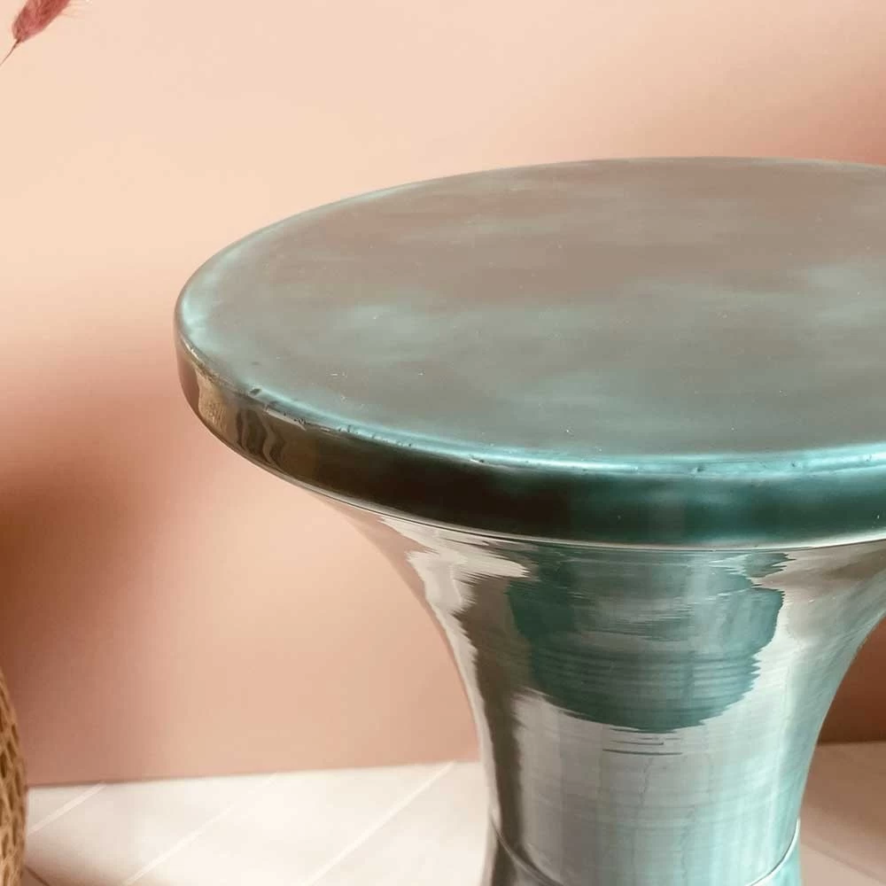 Assise nomade ou table d’appoint en métal émaillé vert émeraude